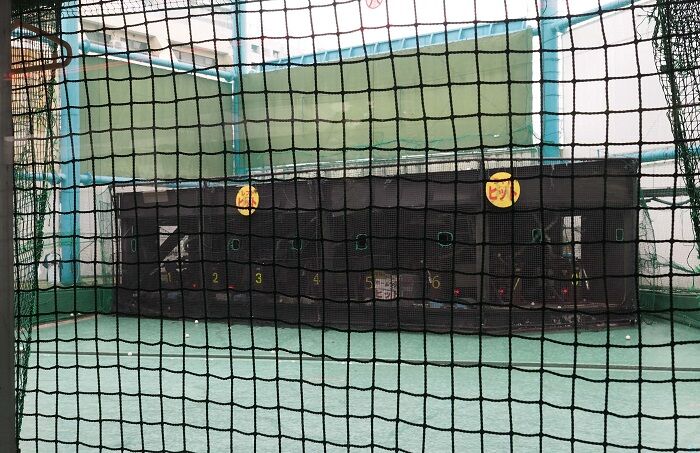 8台の投球マシンはそれぞれ球速が異なり、最速は130km/h。これが打てればプロ並みか。