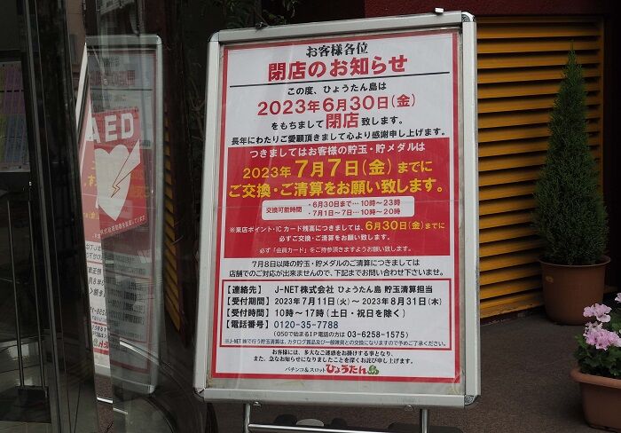ひょうたん島も同じ運命を辿ります。お知らせが別々なのは経営者が違うからなのだろうか。