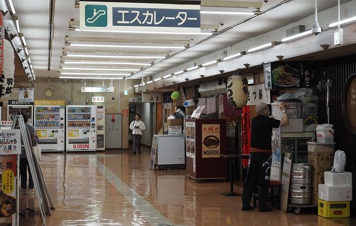 桜上水寄り踏切の北側にある駅前市場は、高架化されても残るのだろうか。
