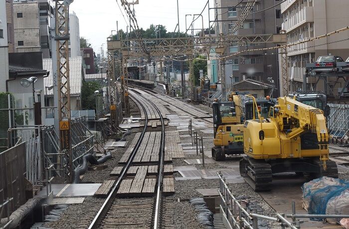 環8を越えた先は複々線を見越した高架ができていて、廃車直前の1700系が留置されていたのを覚えている。工事が始まってからレールが撤去されたが、このまま活用されるのだろうか。