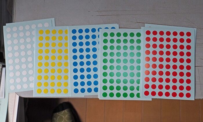 各色3シートずつ、1枚が7×10だから1色あたり210個。少々失敗しても困ることはない。