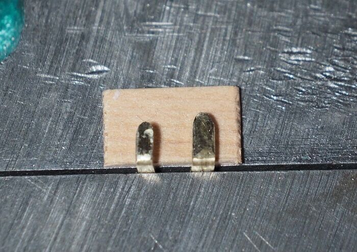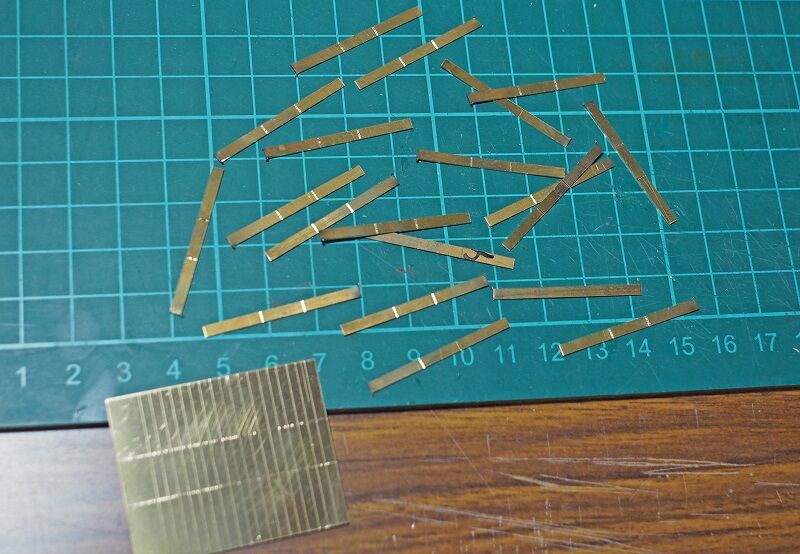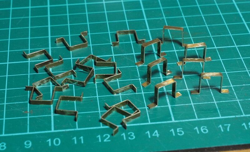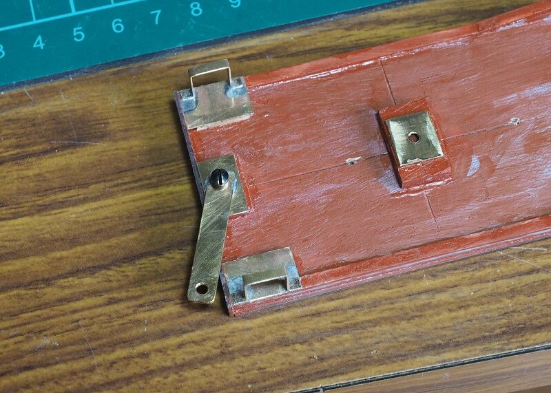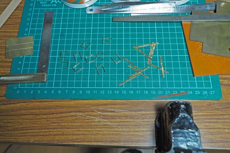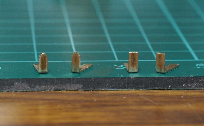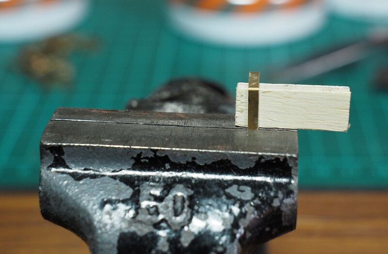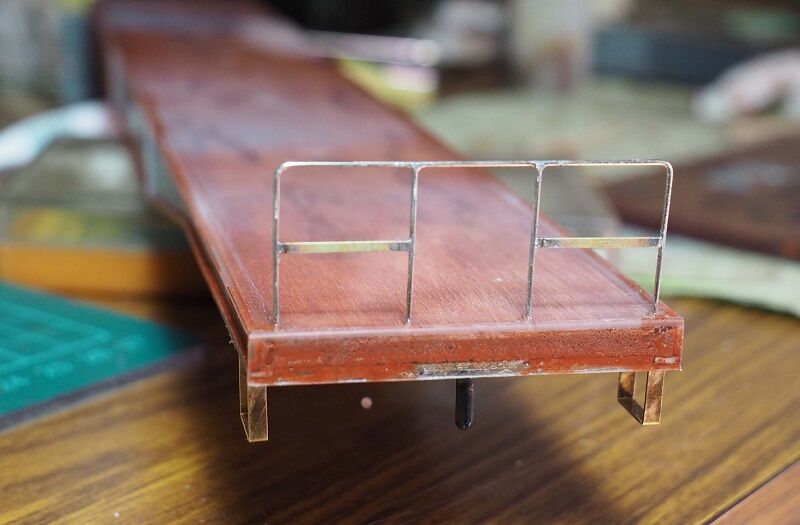 車体側の引っかけは2.2mmの真鍮帯板をL字形に曲げただけ。先端をヤスリで整形した。