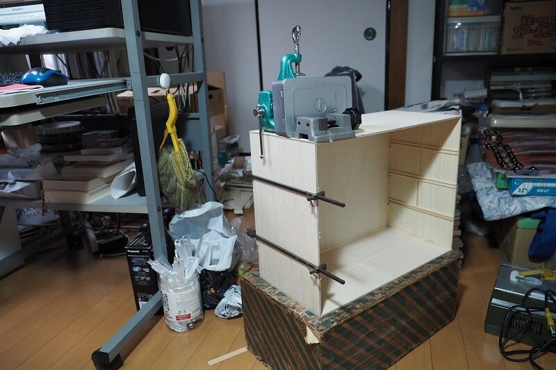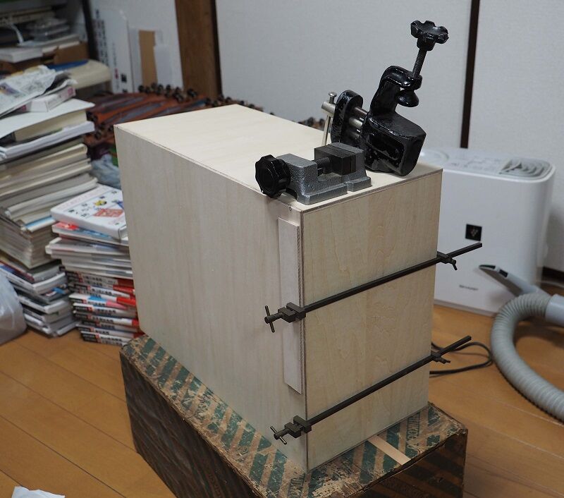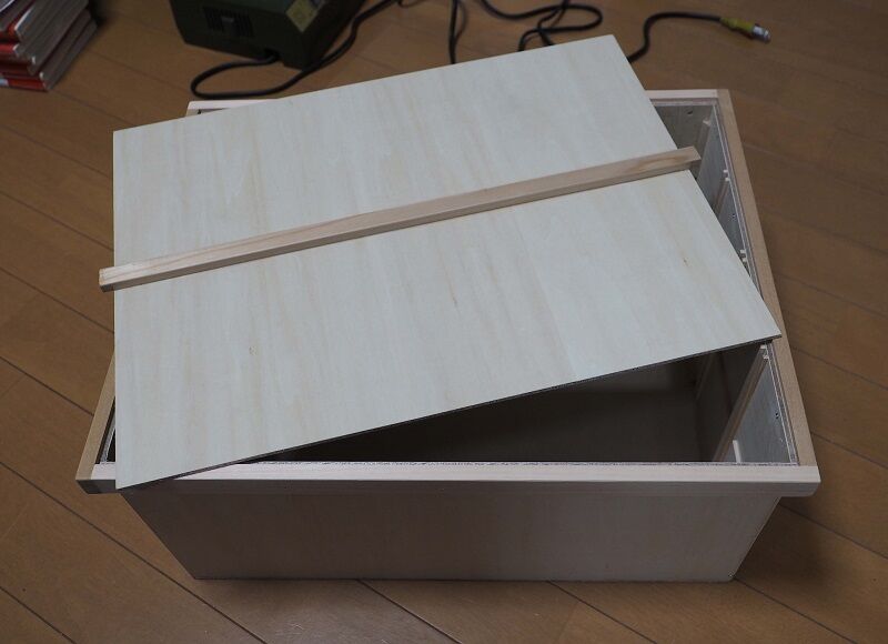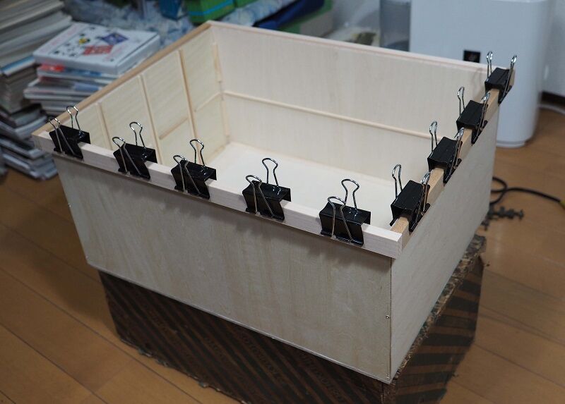 一晩乾燥させ、22日に3枚目を接着。箱らしくなってきた。