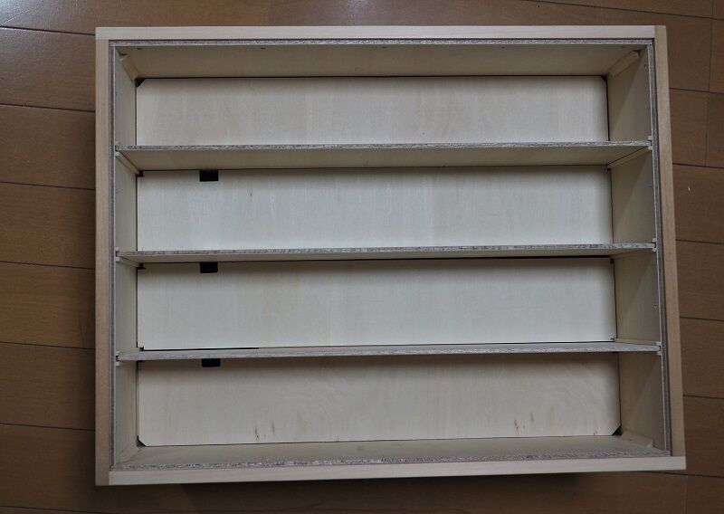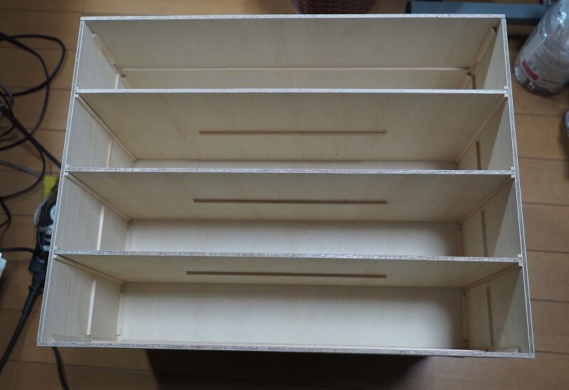 側面の内側には3mm角材で仕切りのガイドを接着。