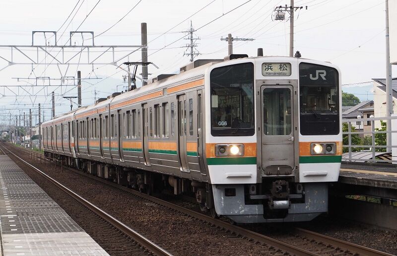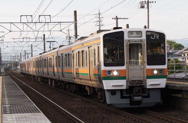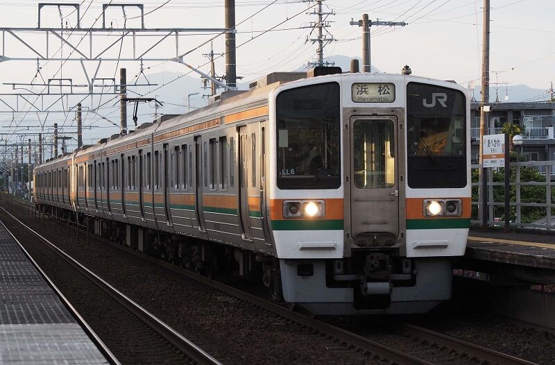 18:12の浜松行きも211系の6連。側面に影が落ちてきたがまだ撮れる。