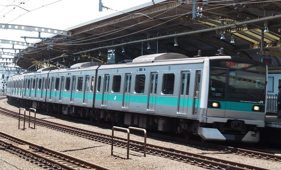 E235系と同様の継ぎ目が目立たないステンレス車体で、前面はシグ鉄さん言うところのウヘヘ顔。よく見ればE233系と同じようだけど、塗装でこれだけ印象が変わるという見本になる。写真は第1編成で車号の下3桁は川越寄りから101~110となり、号車番号と車号末尾が一致するようになった。これだと編成番号を表すのは100位だけだから9本で車号がいっぱいになってしまう。8本で足りるから支障ないということなのだろうか。