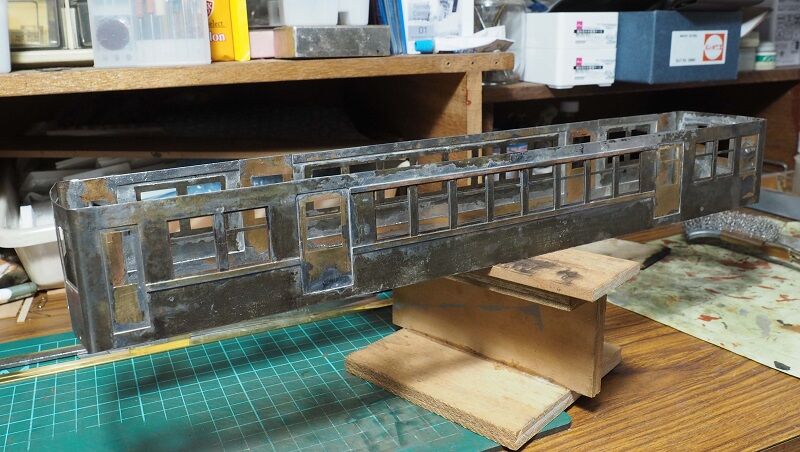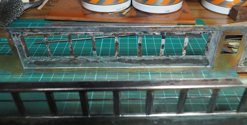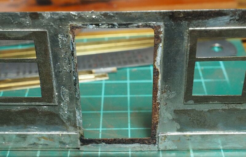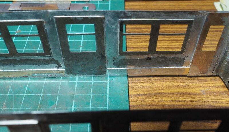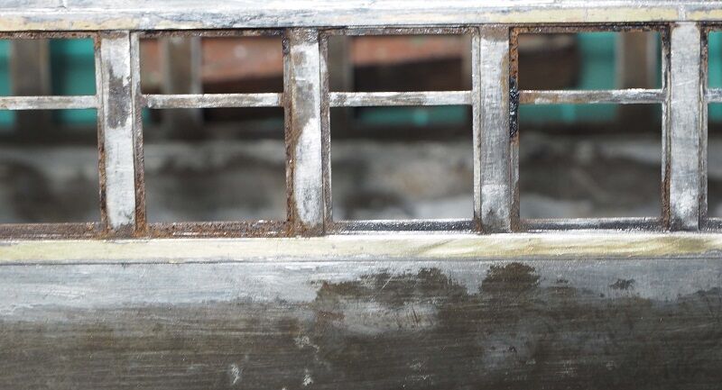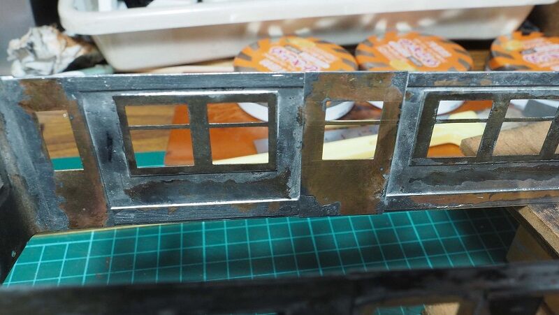 窓柱にもしっかりハンダを回した。こうなると連結面寄りの窓枠も錆が気になる。