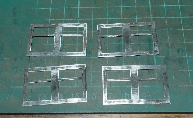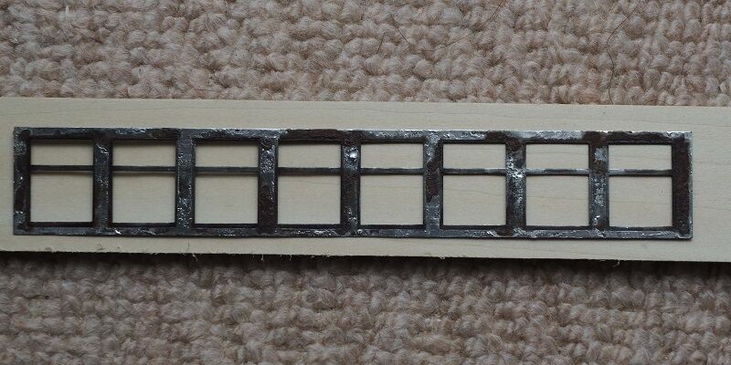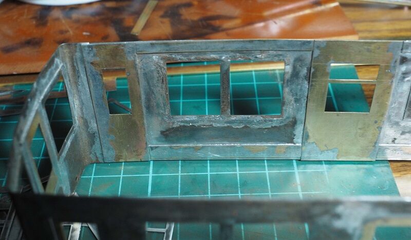 真鍮板を窓にぴったり嵌まり込むように調整してハンダ付けする。アンチクライマーは作業の邪魔になるので一旦取外しておく。