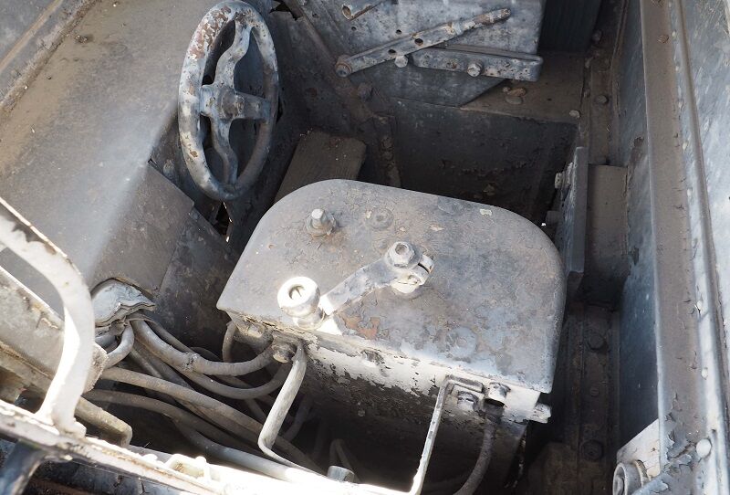 なんとかマスコンが撮れた。鏡板左上にメーカーのアルゲマイネの略称であるAEGのデザイン文字が見える。手ブレーキのハンドルが2個あるのは、車輪用とラックギア用なのだろうか。