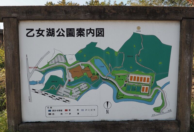駅名は公園内にある乙女湖に由来しているが、駅から乙女湖は見えない。