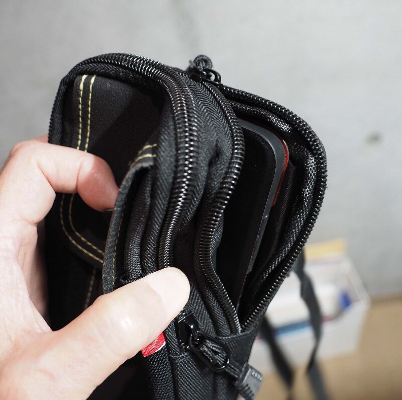 クッションも効いているからスマホは剥き出しで入れることにした。カード類や小銭などはリスク分散の意味からこちらには入れない。空きスペースには撮影メモ、ポケットテッシュ、バンドエイドとオロナイン軟膏なんかを入れておくことになるだろう。