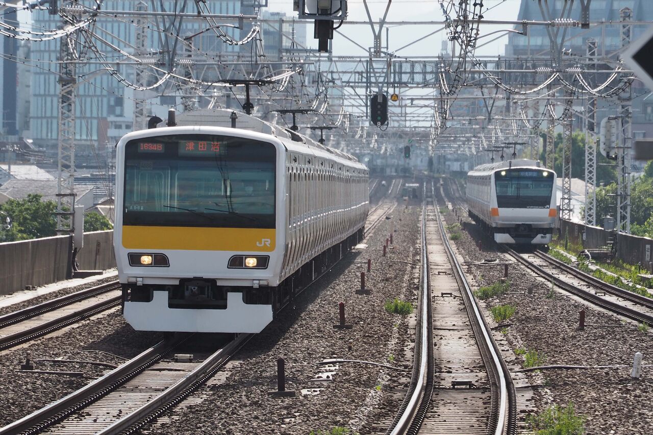 地元を走っているのはこの2系列。左が中央・総武各駅停車のE231系、右が中央線快速のE233系で、E233系は形式、ユニット毎の下2桁が編成番号と同じになっている。E231系はモハのユニット連番なのだが、これは先頭に出ている編成番号から簡単に計算することができる。