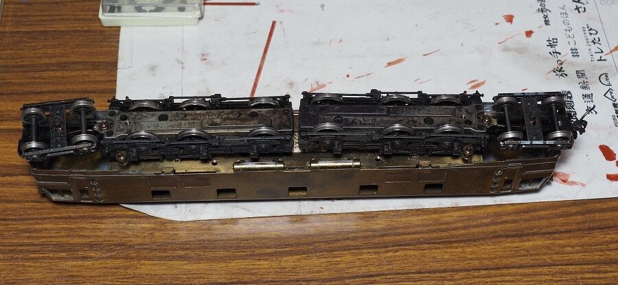 足回りは特にいじる必要はない。台車枠は全くのダミー。その昔のダイカストは経年で反りが出て割れたが、これは数十年たっても変形していないから、あと10年くらいは大丈夫だろう。