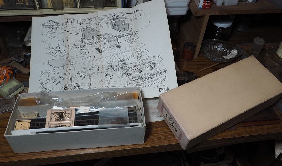 実は2024年の年賀状に「今年は仕掛かり中の16番、EF57とEF58の工作を再開するつもりです」と書いている。しかし2024年には箱を開けて中身を確認しただけで、気がつけば2025年も残り僅かになっている。これはいかんと昨日(7日)、EF58のキットの箱を開け、中身を出してみた。
