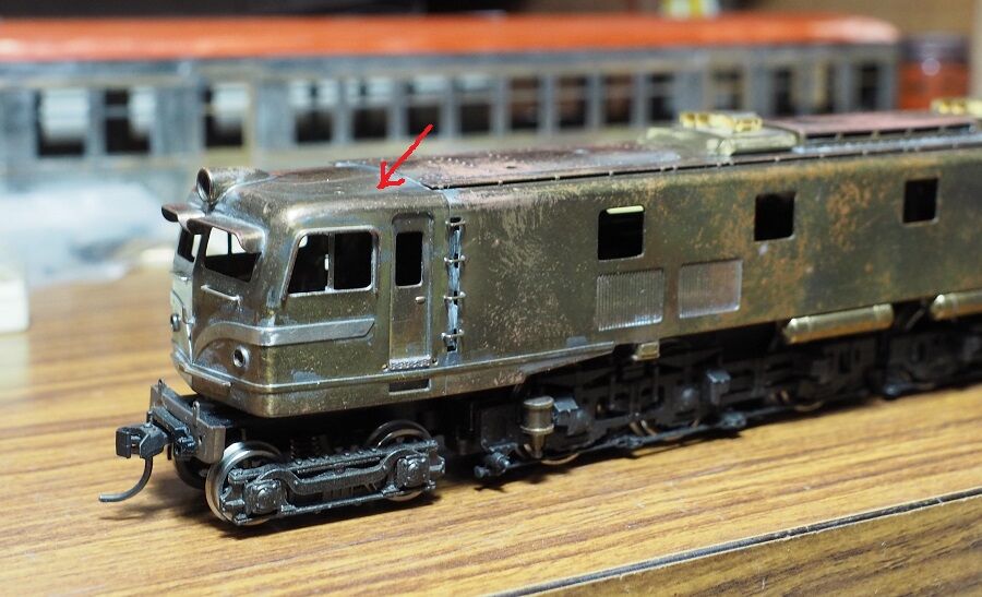 車体はひととおり組みたてられている。屋根上のガラベンはロストパーツに取り換え、上面のヒケを目立たなくするため、だいぶヤスリがけした記憶がある。2011年の地震で本棚の上から落ちたが、幸い車体や台車に損傷はなかった。