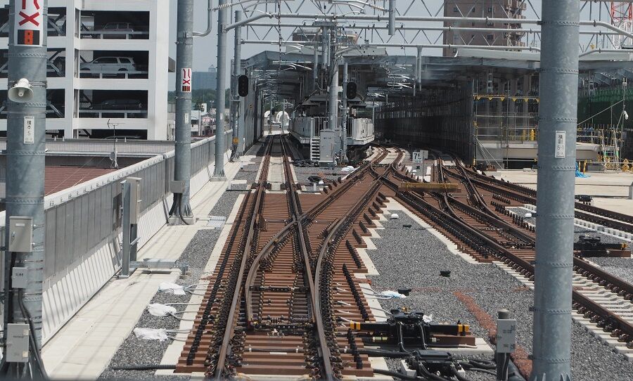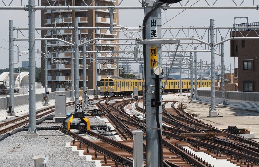 所沢寄り。上りの線路はまだ敷かれていない。上下線の間に引上げ線ができている。