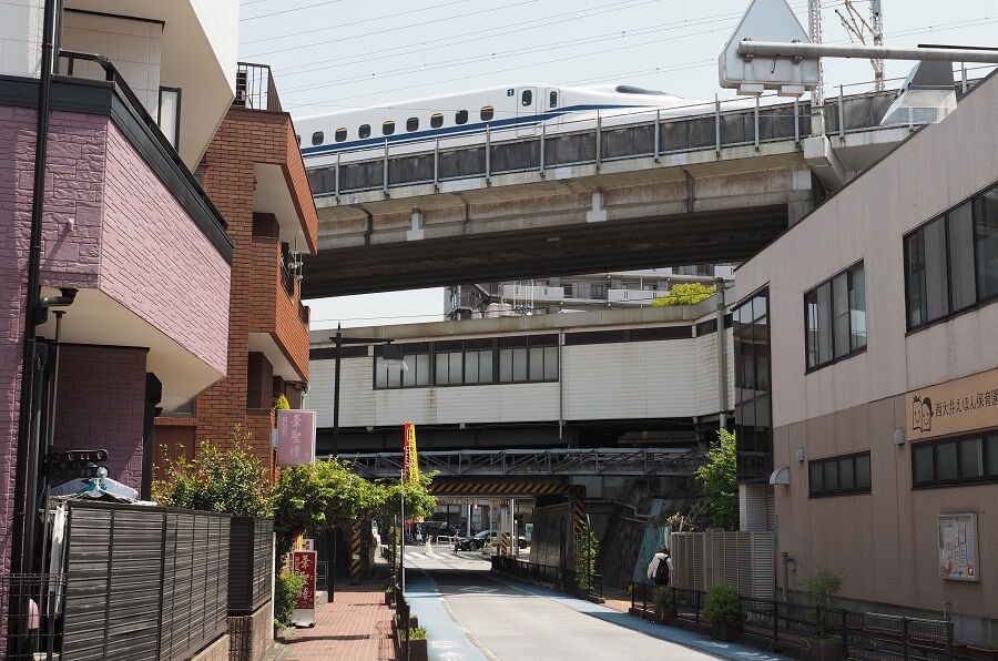 ついでに立会道路を大井町まで歩いた。新幹線の下が西大井駅。