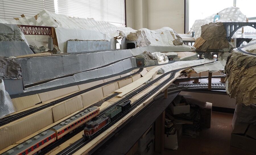 10日、小池さんのレイアウト。今回は武蔵野急行で最古参のぺーパー製電車を持ち込んだ。