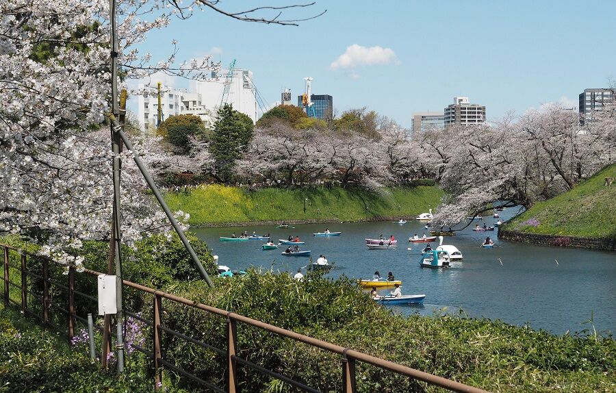 4日、今年は4月に入ってからが桜のピークになった。平日にも関わらず、千鳥ヶ淵は人、人、人で溢れていた。