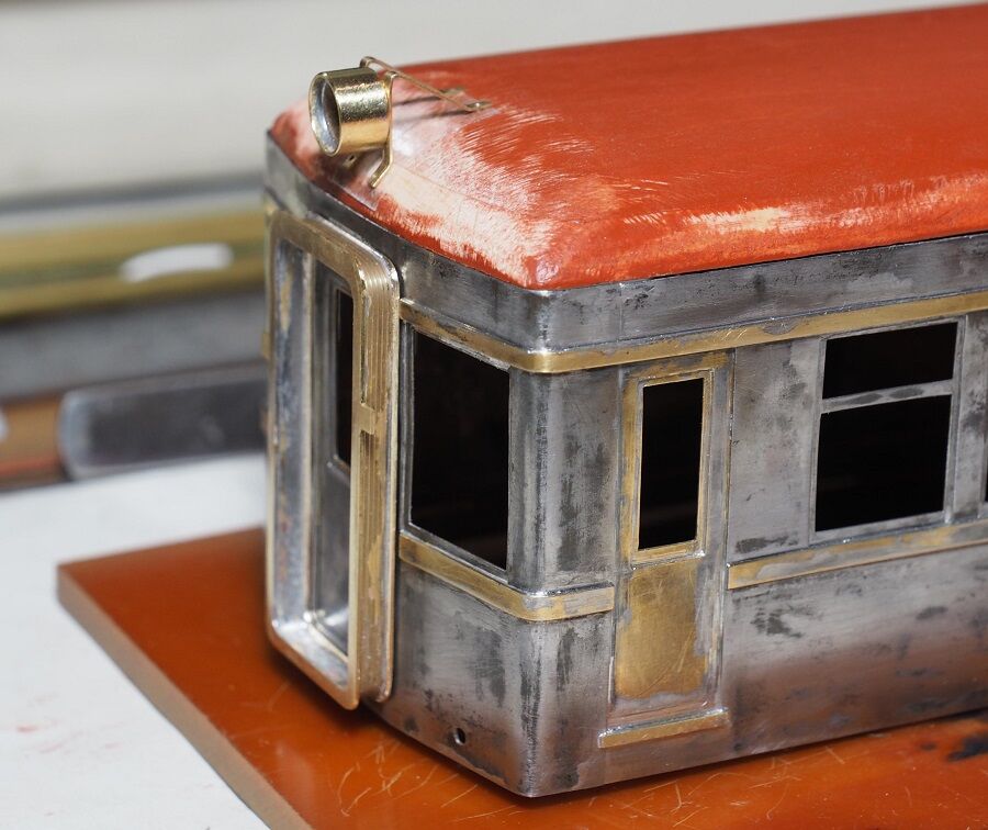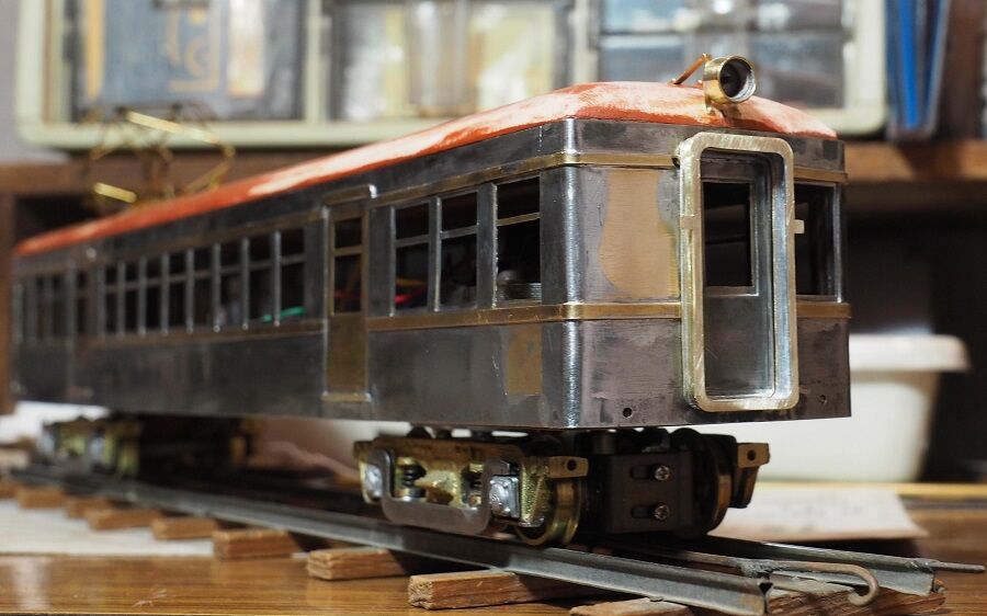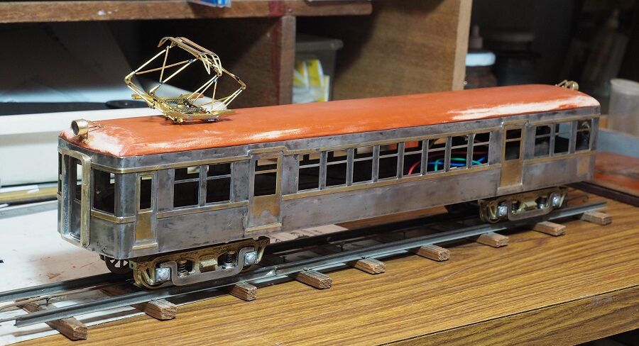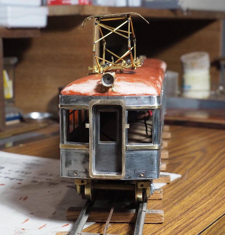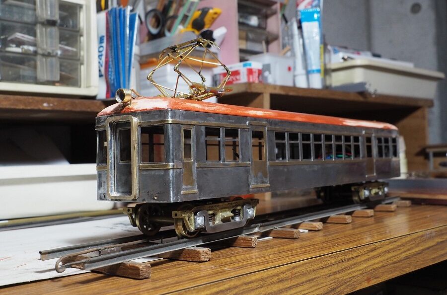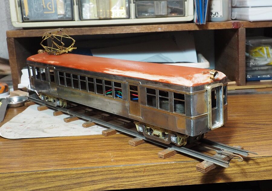 玉電デハ60形はどうしたかと過去ログを見てみたら、0.7mmの真鍮線をハンダ付けして屋根に差込んでいる。今回、パーツ箱を掻き回したらこんなものが見つかった。値段からしてだいぶ昔に買っておいたのだろう。長さ8mmくらいで太さは0.6mm、これなら使えそうだ。