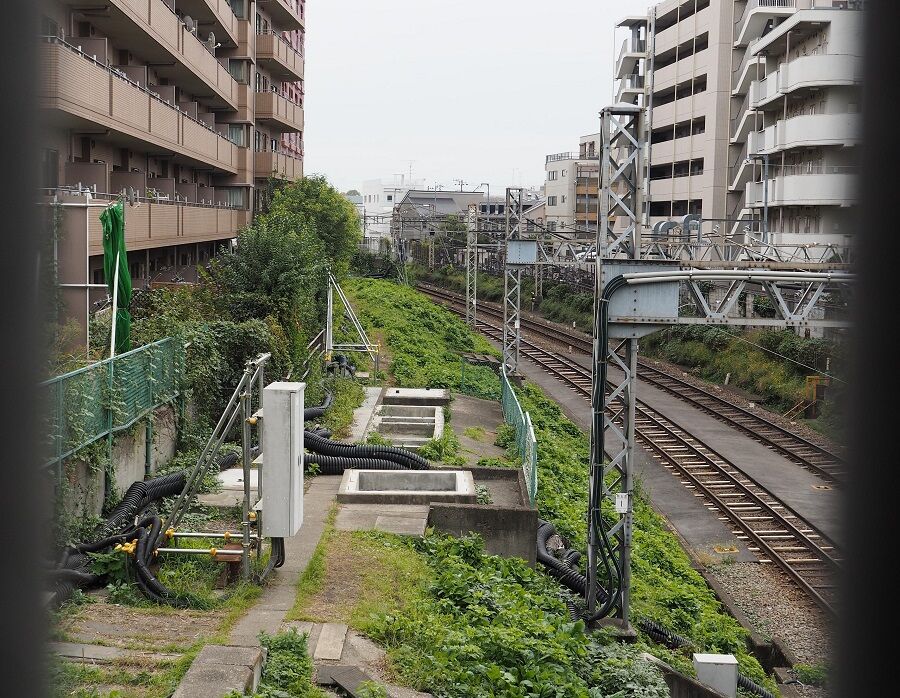 本日(5日)、まともな編成写真を撮ろうと定番の場所に向かった。なんと、先客がいる。この場所で同業者に出会ったのは初めてだ。彼は長玉で構えていて、前に私が入っても問題なかった。それにしてもこの日除けの降ろし方は東急も真っ青だ。前面窓は10cmくらいのスリットがあれば用が足りるということになる。
