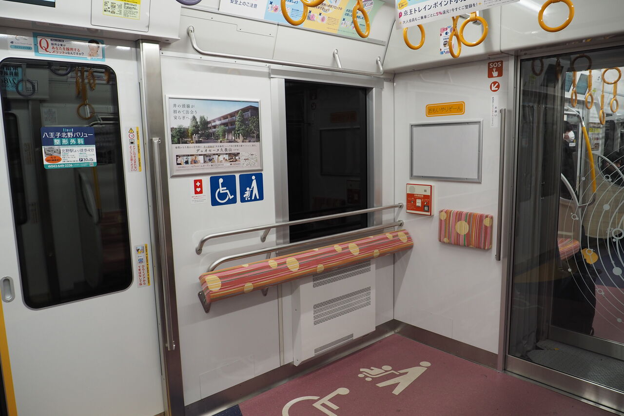 おもいやりスペース。貫通ドアは片手で軽く開閉できた。