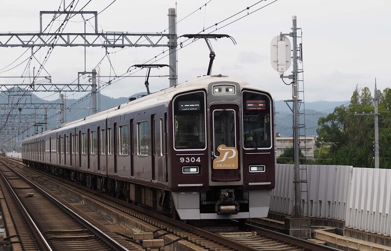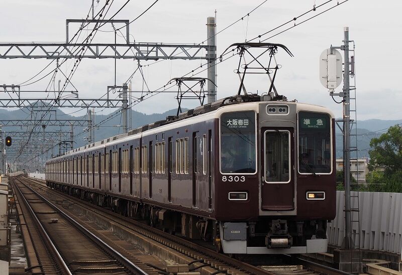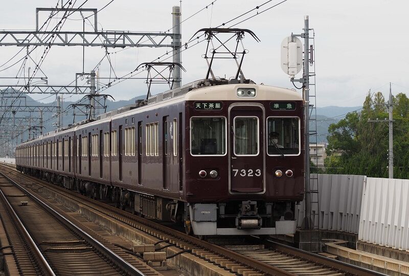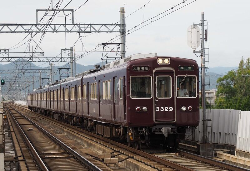 宝塚線だから2100系か。1500Vに昇圧しているからパンタは1個になっている。このあと市電を乗り継いで上本町に向かっている。