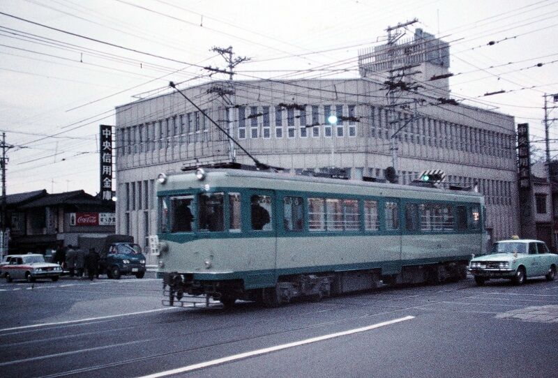 ということで今日の写真は1968(昭和43)年1月3日に撮影した京都と大阪の電車。大学3年で家にいても退屈だがら「ちょっと行ってくる」と2日の夜行列車(急行の讃岐だったと思う)に乗って関西に向かった。京都で降りて最初に撮っているのがこれ。京阪の80形で市電の線路と直角に交差しているから東山三条だろう。それにしても見事にガラ空きだな。