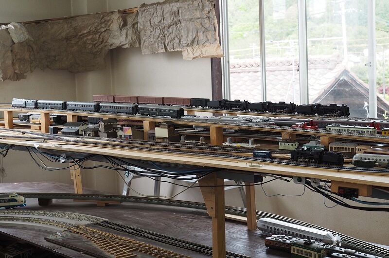 私はこれを持っていった。リュックに詰込むため6両に減車したが、ループ線の勾配を登れなかった。動力台車の車輪を清掃してもほとんど変わらずで、原因は線路清掃で使ったCRC5-56をよく拭き取っていなかったため、油分が練れた状態でレール面に残っていたのではないかと考えられる。過去には1M3Tの編成が問題なく走っているので車両のせいではないと思うが、念のためトレーラーの状態なども点検してみよう。