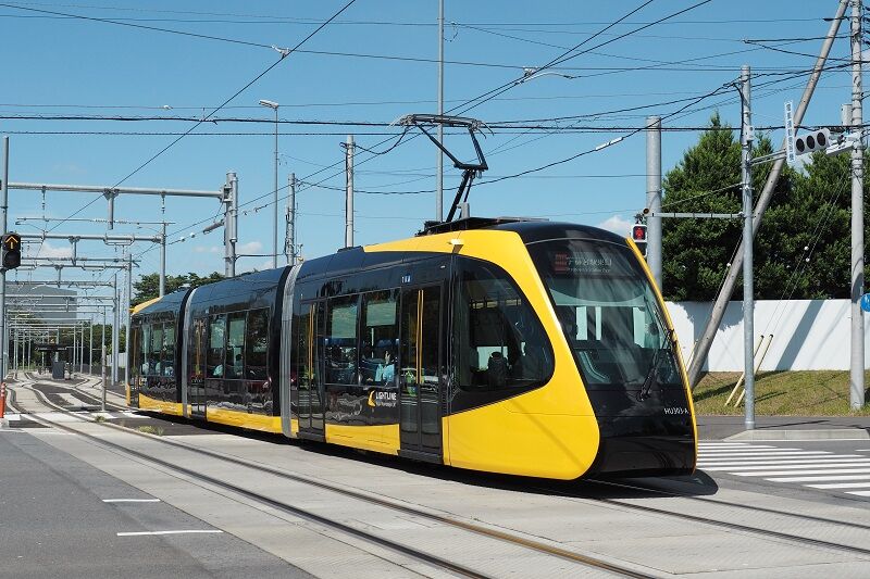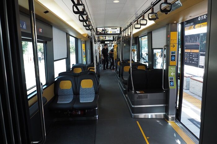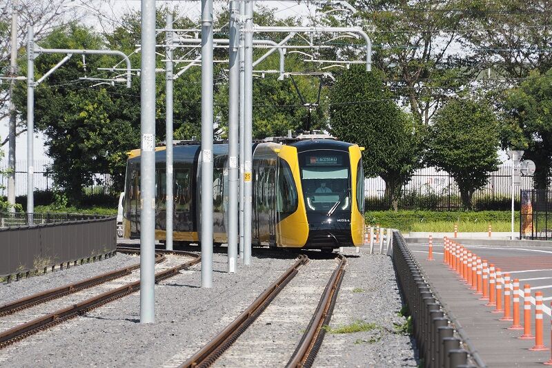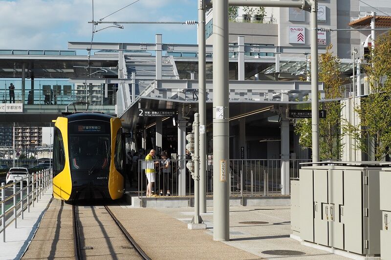 16時前でホームはだいぶ人が増えている。初乗りの感想として、車両は幅も広くて存在感は大きい。併用軌道でも40km/h目一杯で走るから、かなりスピード感もある。走行音は静かだが、タイヤフラット気味の車両も見かけた。専用軌道の40km/h運転は車両の性能からも勿体ない。特例措置で最低でも60km/hくらいにアップして欲しいところ。そうなると単車特有の揺れが気になりそうだ。そういえば車内で製造銘板や車号の表示を確認できなかった。気がつかなかっただけなのかも知れない。