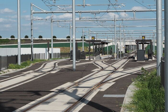 平石は緩急接続と折返しが可能で、車両基地への入出庫線も加わるから、配線マニアには見逃せない。この先は大きくSカーブして鬼怒通りに合流する。