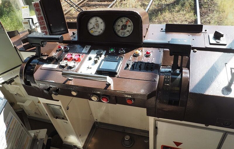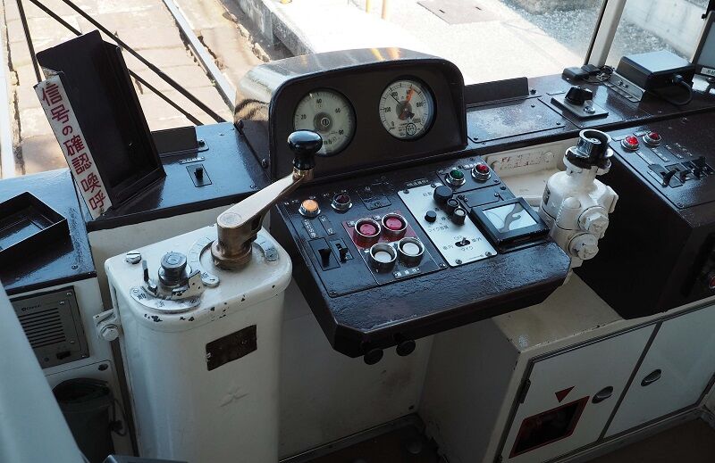 問題の解答。モ701は完全な新車で、30kW×4のカルダン駆動、ブレーキは電気指令式なので、運転台は両手操作のワンハンドルマスコンを備えている。