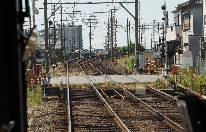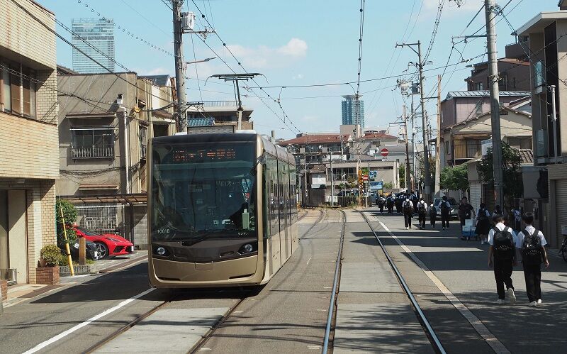 北畠から併用軌道になる。中学生らしい集団がぞろぞろ歩いているけど、遠足じゃないよな。