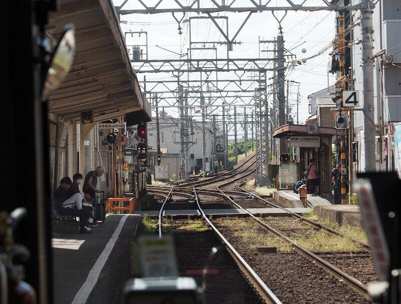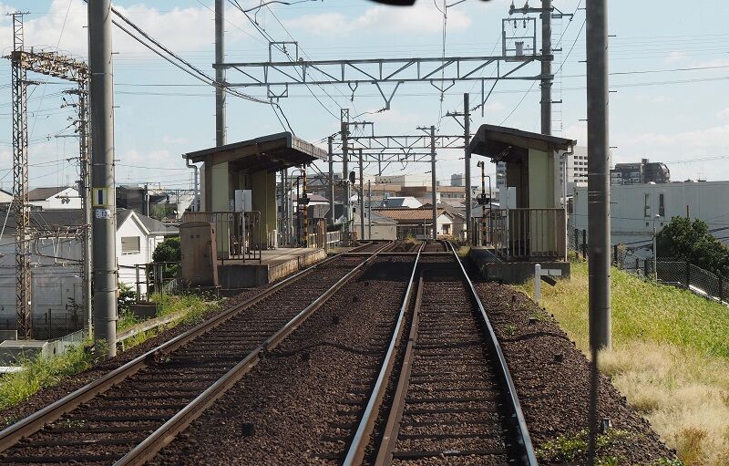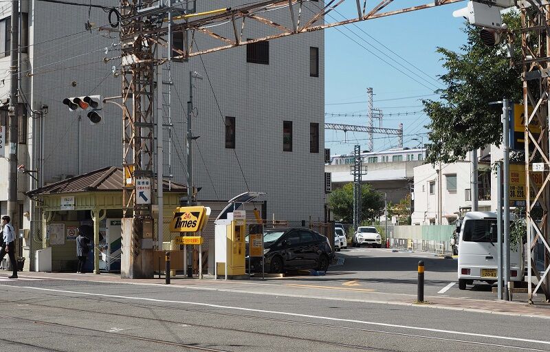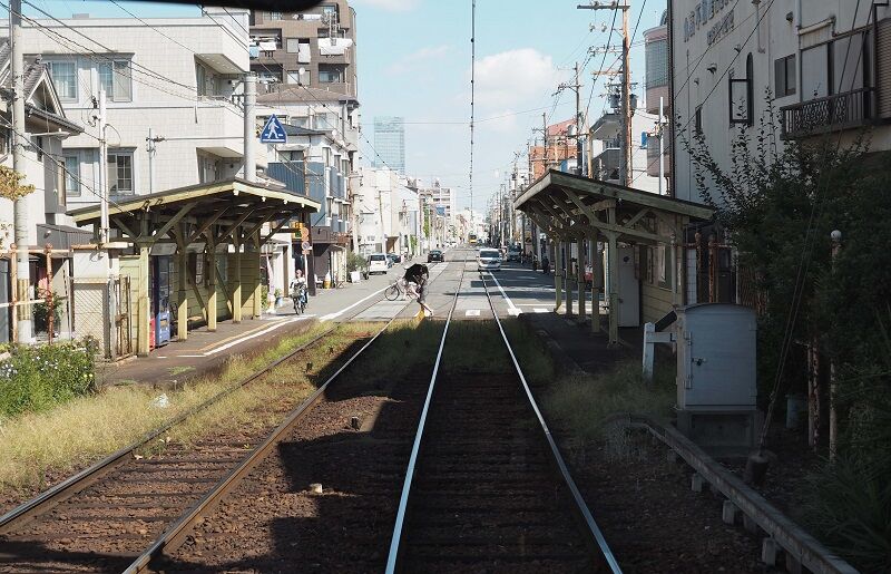 併用軌道との境目の細井川で降り、住吉鳥居前まで歩く。ここの下りホームは上屋がない。