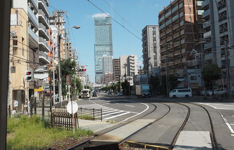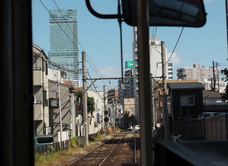 角度を変えればこんないたずらもできる。このまま天王寺に戻るのはまだ早いから、もう一度あびこ道まで戻り、本来の阪堺線である恵美須町まで乗ってみる。