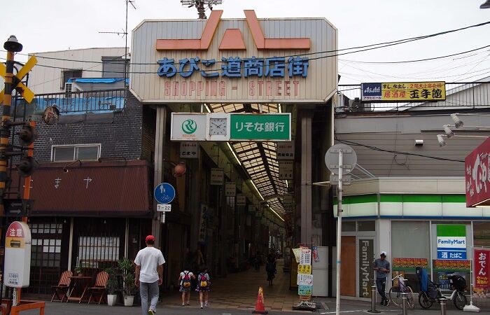 大和川も降りるつもりだったが暑さでパスし、あびこ道で降りる。線路の東側はあびこ道商店街なのだが、あれれ、アーケードがなくなっている。