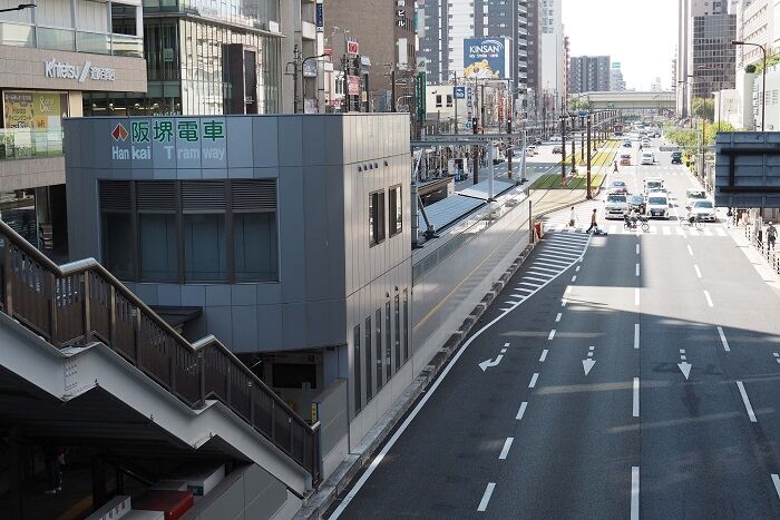 天王寺駅前の阪堺電車乗り場、時刻は10時を少し過ぎたところ。