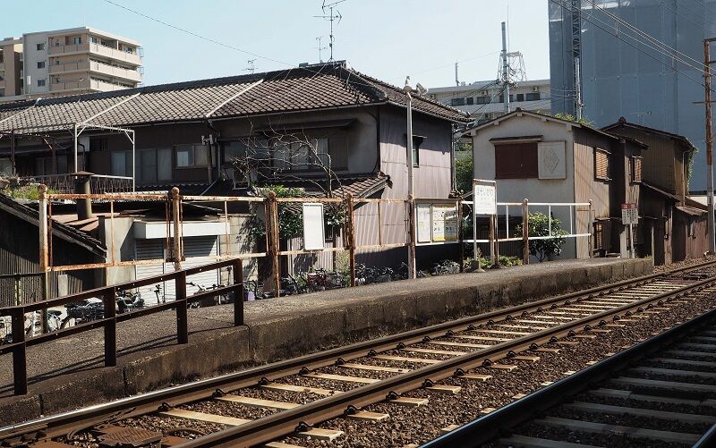 寺地町で降り、宿院まで歩く。ここだけちょっと洒落た上屋があり、かつて海水浴などで賑わった時代の建物をイメージしているらしい。付近には千利休屋敷跡や与謝野晶子の生家跡がある。