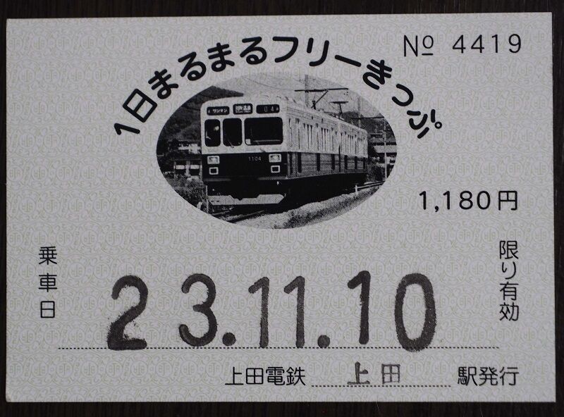 1日乗車券を買う。全線往復と同額だから、1回途中下車すればモトはとれる。実は私、上田電鉄は初めてなので、これから先はバージンロードなのだ。