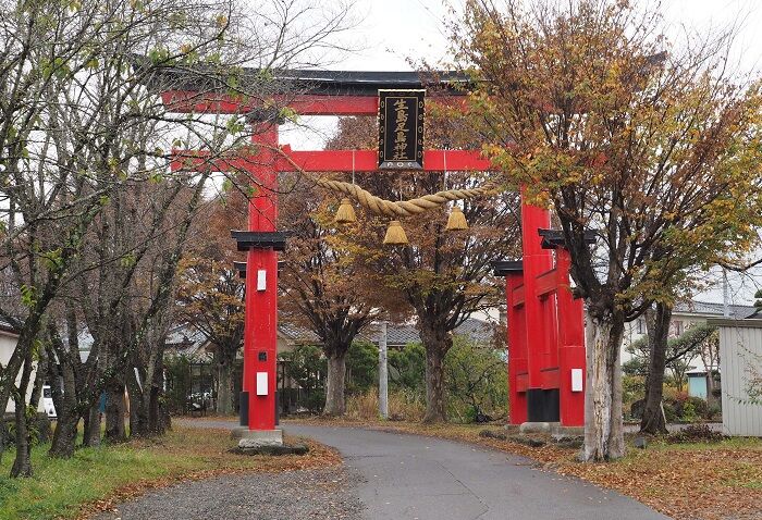 ちょっと歩くと立派な鳥居があった。線路はカーブしているので、どんどん離れてしまう。