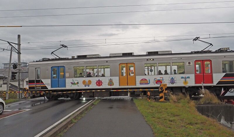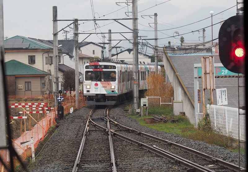 4駅目の上田原で交換。1002-1102は「れいんどりーむ号」の愛称が付く。