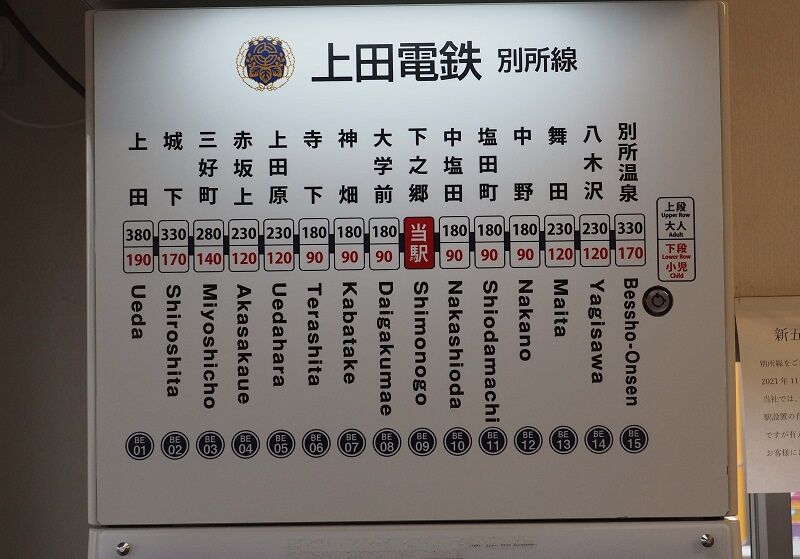 下之郷は別所温泉までのほぼ中間で、車両基地がある。交換可能なのはここと上田の次の城下の3駅のみ。下之郷~別所温泉間は1列車しか入れない。