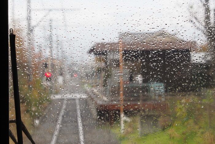 先頭から各駅を撮影するつもりだったが、雨でピントが合わなくなったので諦める。