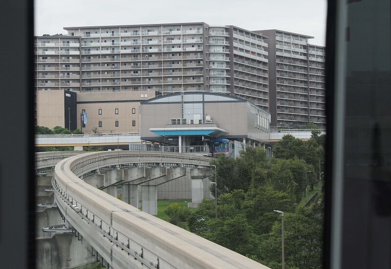 千里中央で降りてモノレールに乗換える。後ろの建物は豊中市千里文化センターで、ここが豊中市というのはちょっと意外に感じる。