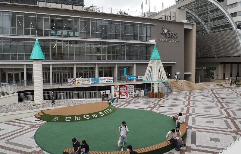 モノレールの千里中央までは数100m離れている。その間は商業施設が続き、人通りは多い。