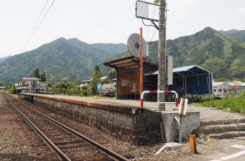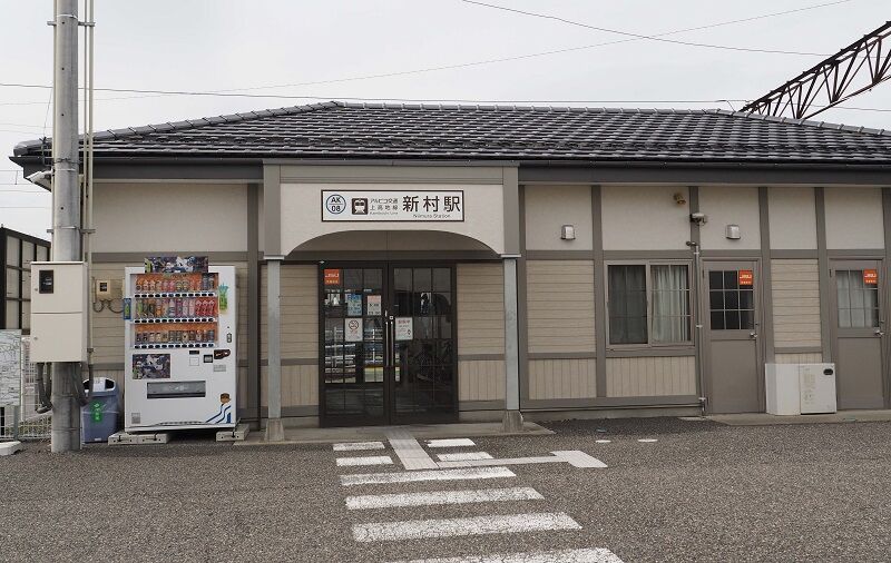 新村で降りる。車庫がありほとんどの列車が交換するというのは、上田交通の下之郷とよく似ている。