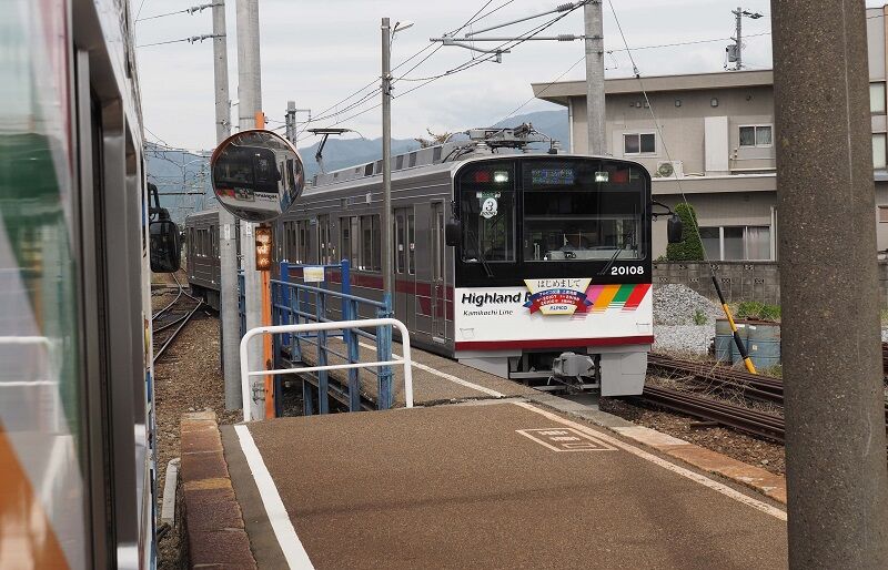 12:39、新島々に到着。奥に止まっているのは20101-20102。
