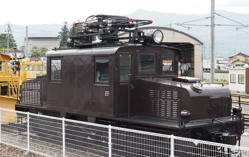今年の1月に入線した4本目。これで車両の置換えは完了となる。2両でパンタは3個だが運転室寄りのパンタはどちらも霜取り用で、連結面の走行用パンタを上げているのはクハ。ややこしいことするなって。順光なのに雲がかかって側面が暗くなってしまった。松電の路線はほぼ東西に走っていて、片持ちの架線柱はすべて南側にある。通信用ケーブルの位置が高く車体にかからないのがせめてもの救いといえる。
