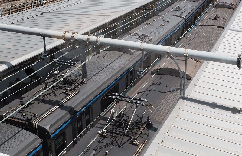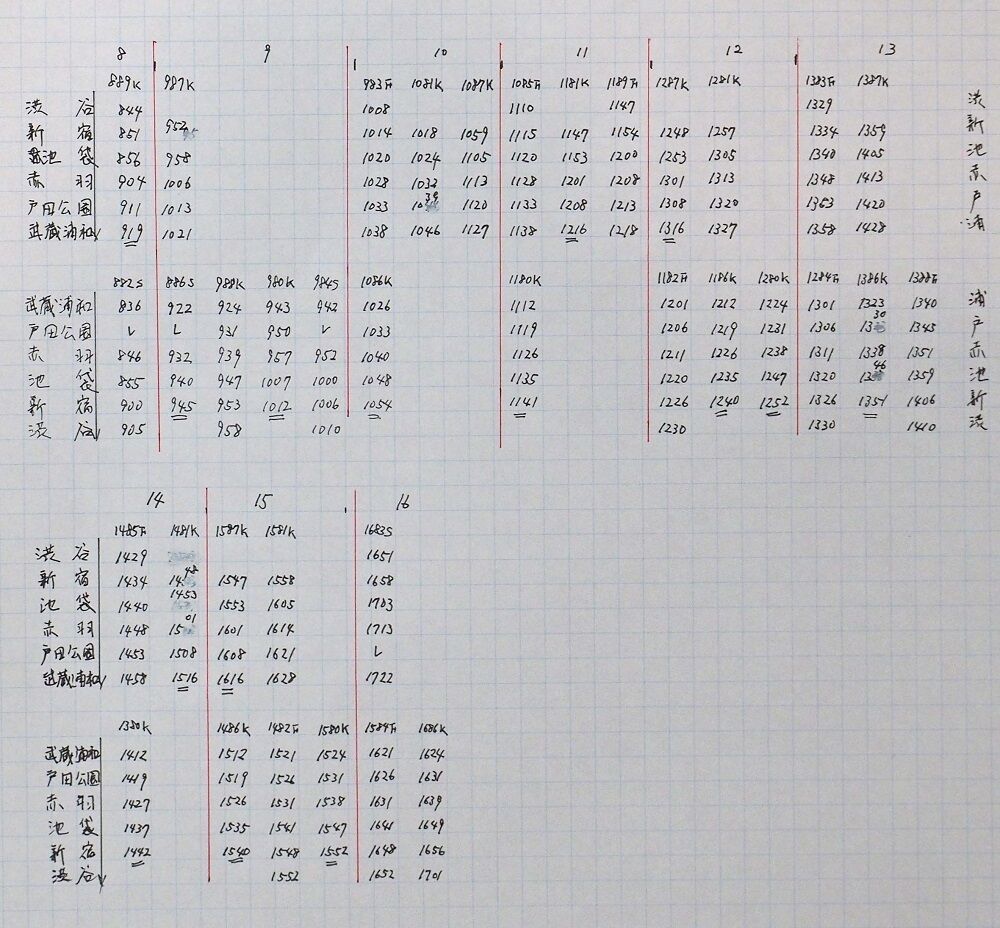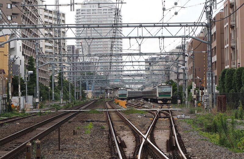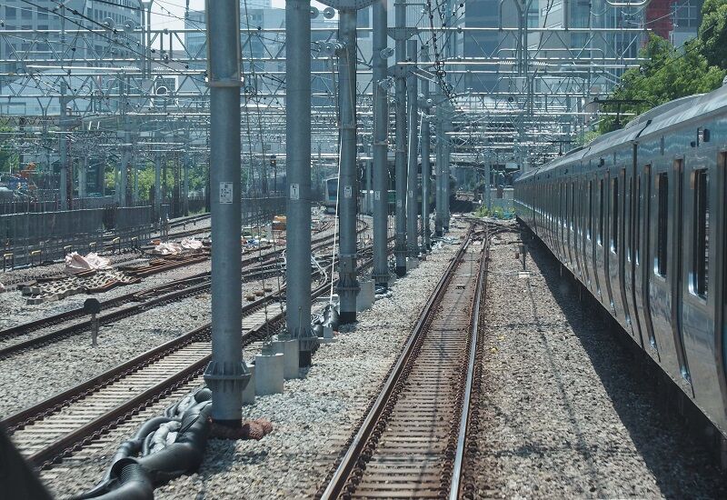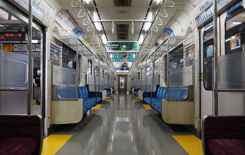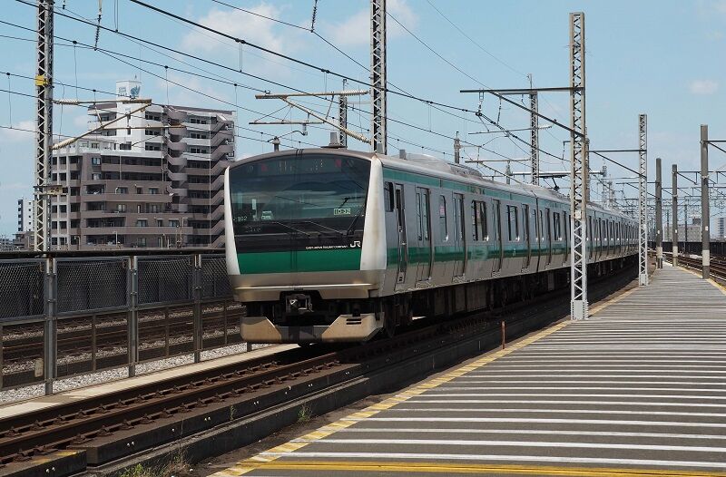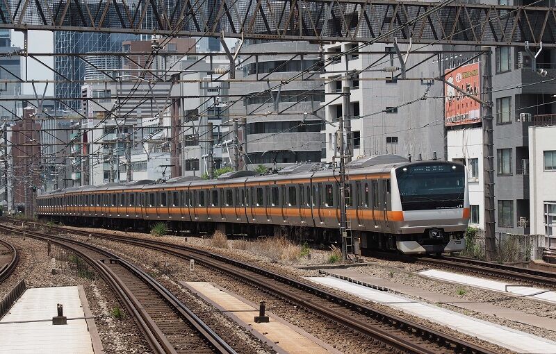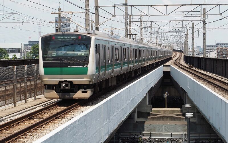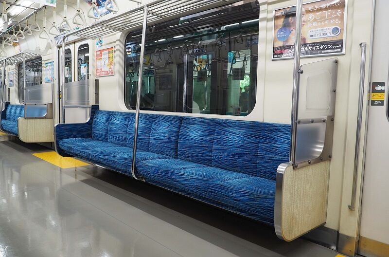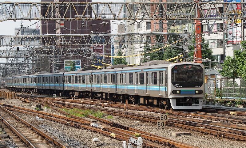 E235系と同様の継ぎ目が目立たないステンレス車体で、前面はシグ鉄さん言うところのウヘヘ顔。よく見ればE233系と同じようだけど、塗装でこれだけ印象が変わるという見本になる。写真は第1編成で車号の下3桁は川越寄りから101~110となり、号車番号と車号末尾が一致するようになった。これだと編成番号を表すのは100位だけだから9本で車号がいっぱいになってしまう。8本で足りるから支障ないということなのだろうか。