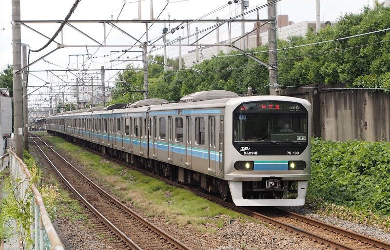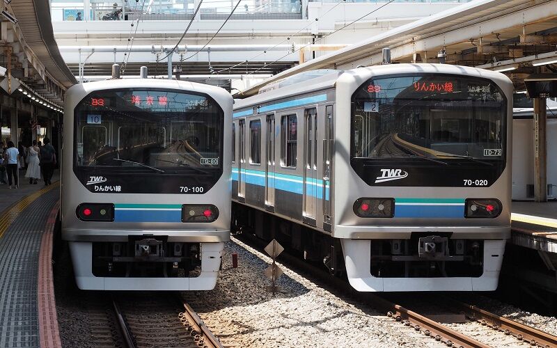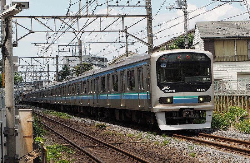 10月1日から営業運転に就いている東京臨海高速鉄道の71-000形。24日にキャッチできた。奇をてらわず無難なデザインといえる。